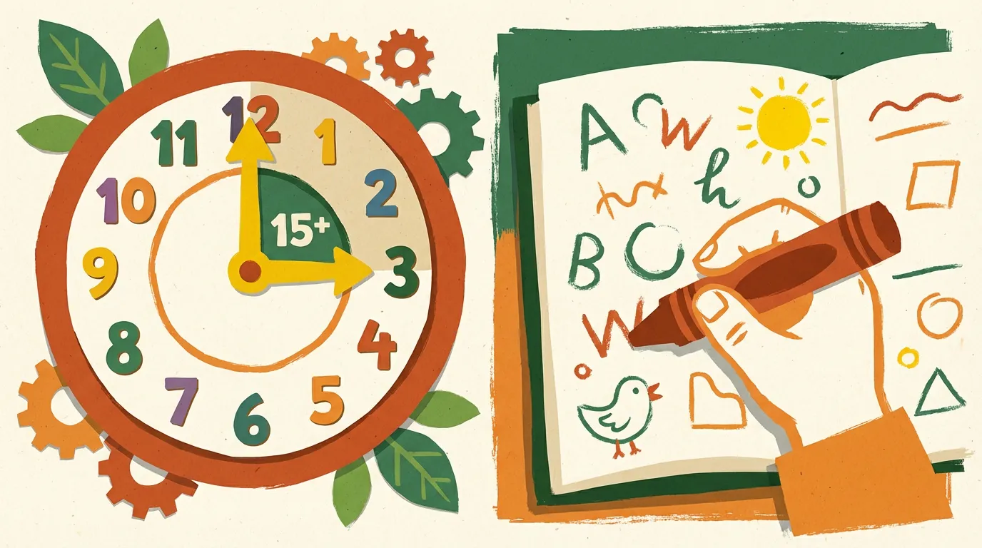 Kratke, redovne sesije su daleko efikasnije od povremenih dvočasovnih maratona. Kad dete radi 15 minuta svaki dan, ono gradi naviku. Mozak pamti bolje kad informacije dolaze u malim porcijama, sa pauzom između. To nije samo roditeljski osećaj — to je način na koji dečji mozak zapravo obrađuje nove informacije.